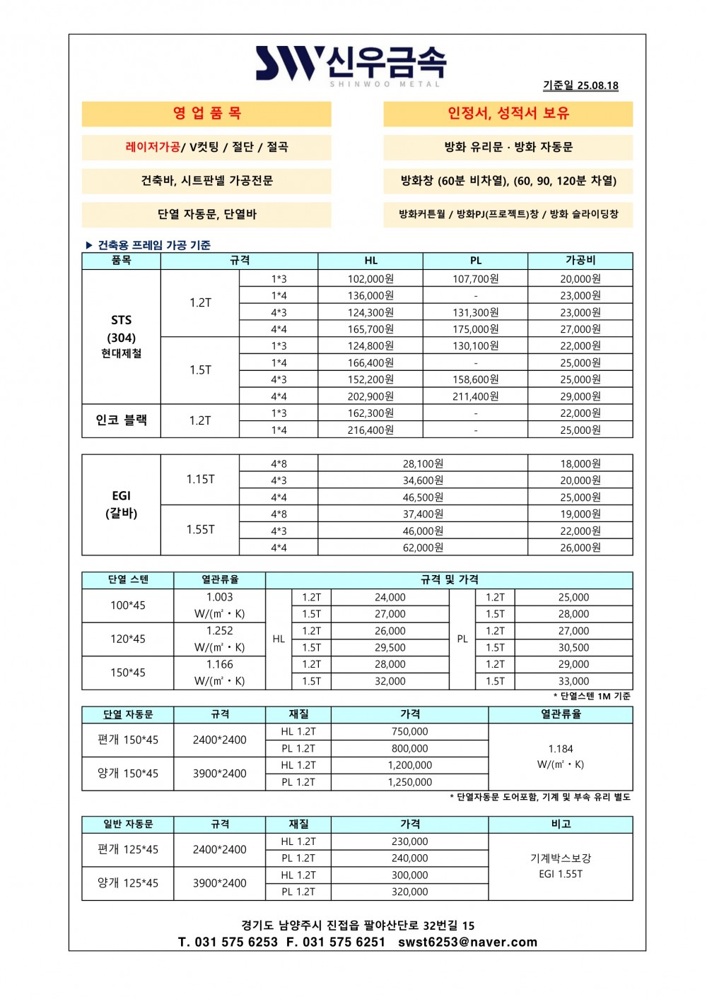 [2025년 8월 단가표] 절단/절곡/레이저/방화/단열 판매가격 ψ(`∇´)ψ❤ 페이지 정보 작성일 25-08-21 13:45 조회 148회 목록 본문 이전글[2025년 9월 단가표] 절단/절곡/레이저/방화/단열 판매가격 ψ(`∇´)ψ❤ 25.09.16 다음글[2025년 7월 단가표] 절단/절곡/레이저/방화/단열 판매가격 ψ(`∇´)ψ❤ 25.07.09